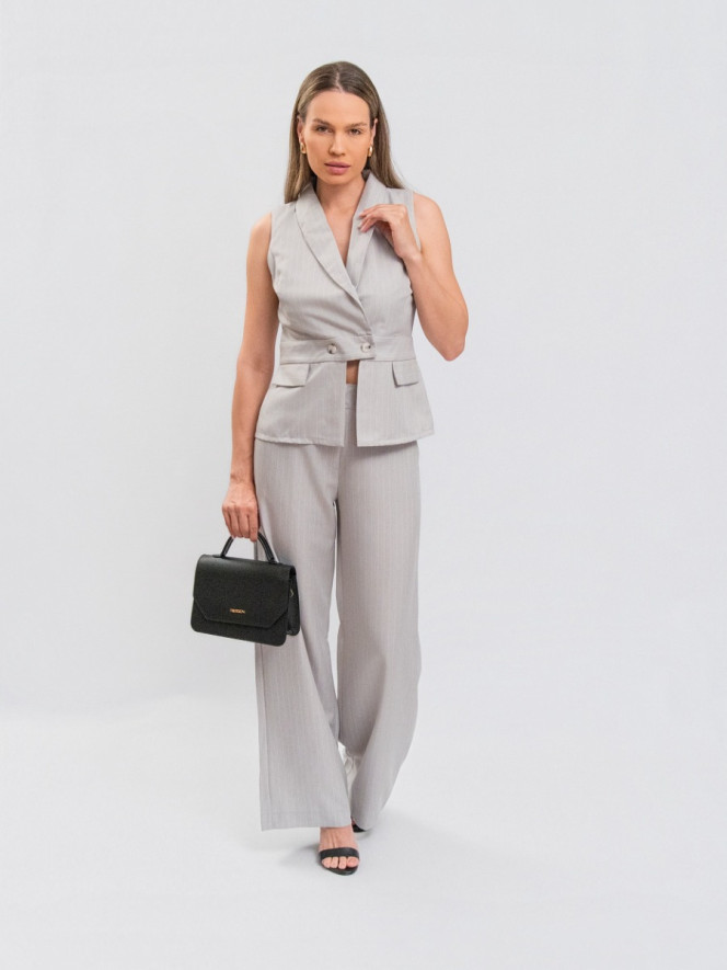 Colete Reisen Alfaiataria Listrado Cinza