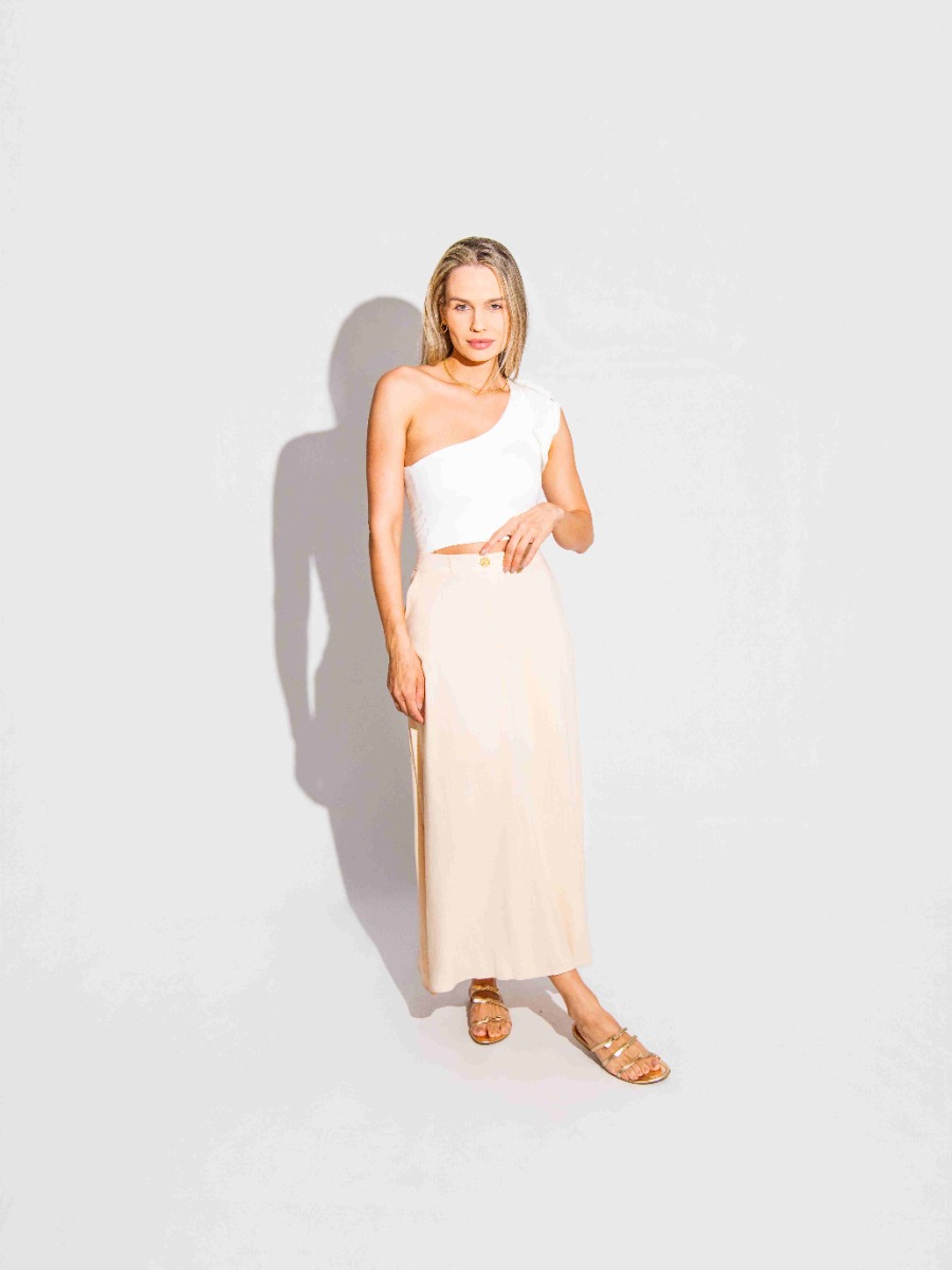Confeccionada em malha confortável e de ótimo caimento, valoriza o corpo e garante praticidade para compor looks versáteis — ideal para produções casuais ou mais elaboradas.