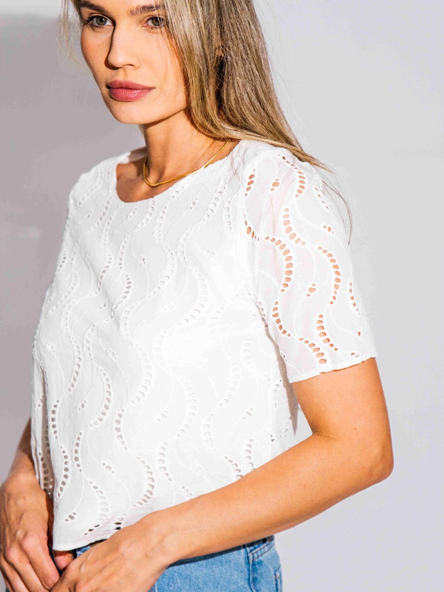 Blusa Reisen Cropped em Laise Off White
