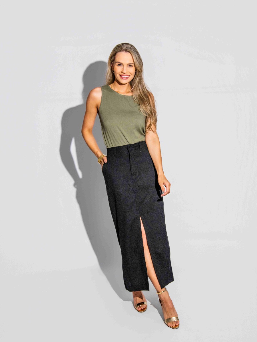 Confeccionada em tecido leve e de ótimo caimento, garante conforto e estilo em qualquer ocasião.