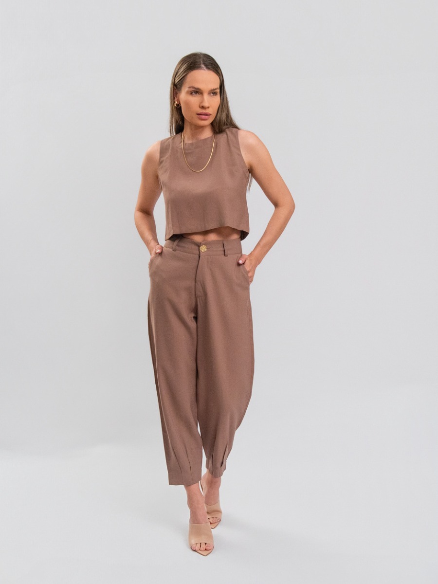 - Calça Reisen Alfaiataria Cenoura Castanho