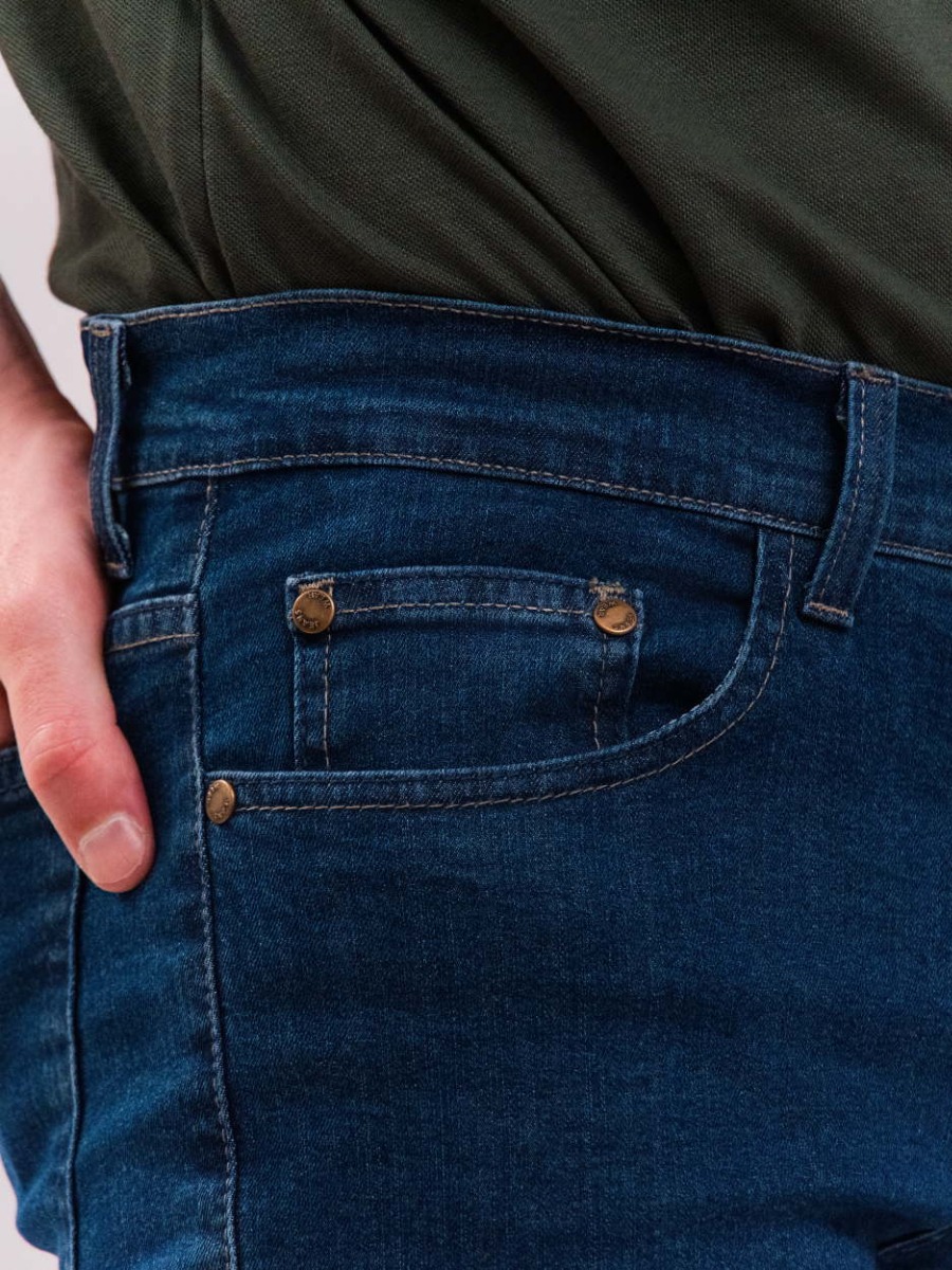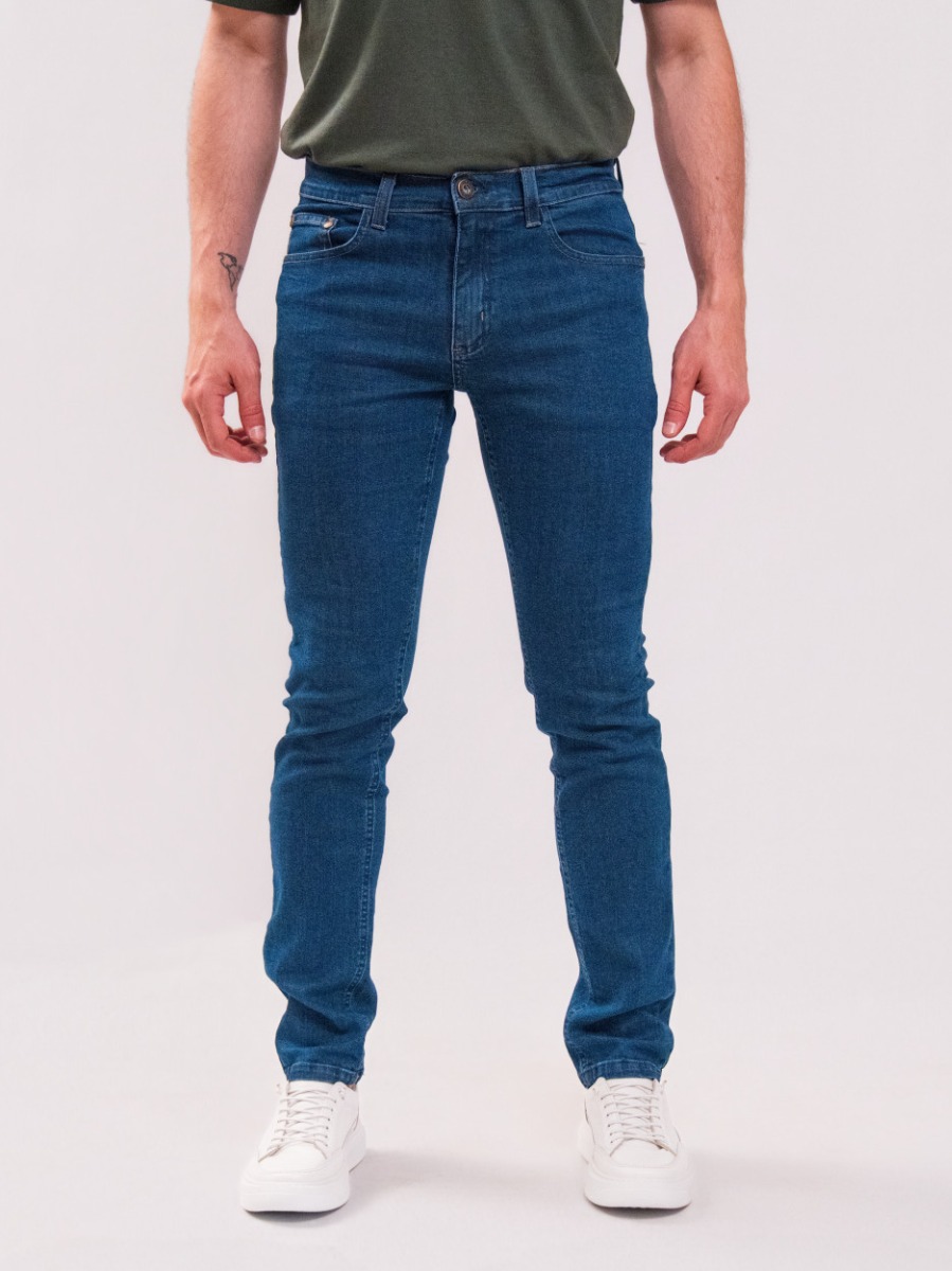 A calça jeans masculina azul escuro Reisen combina versatilidade e conforto em uma modelagem moderna e ajustada.