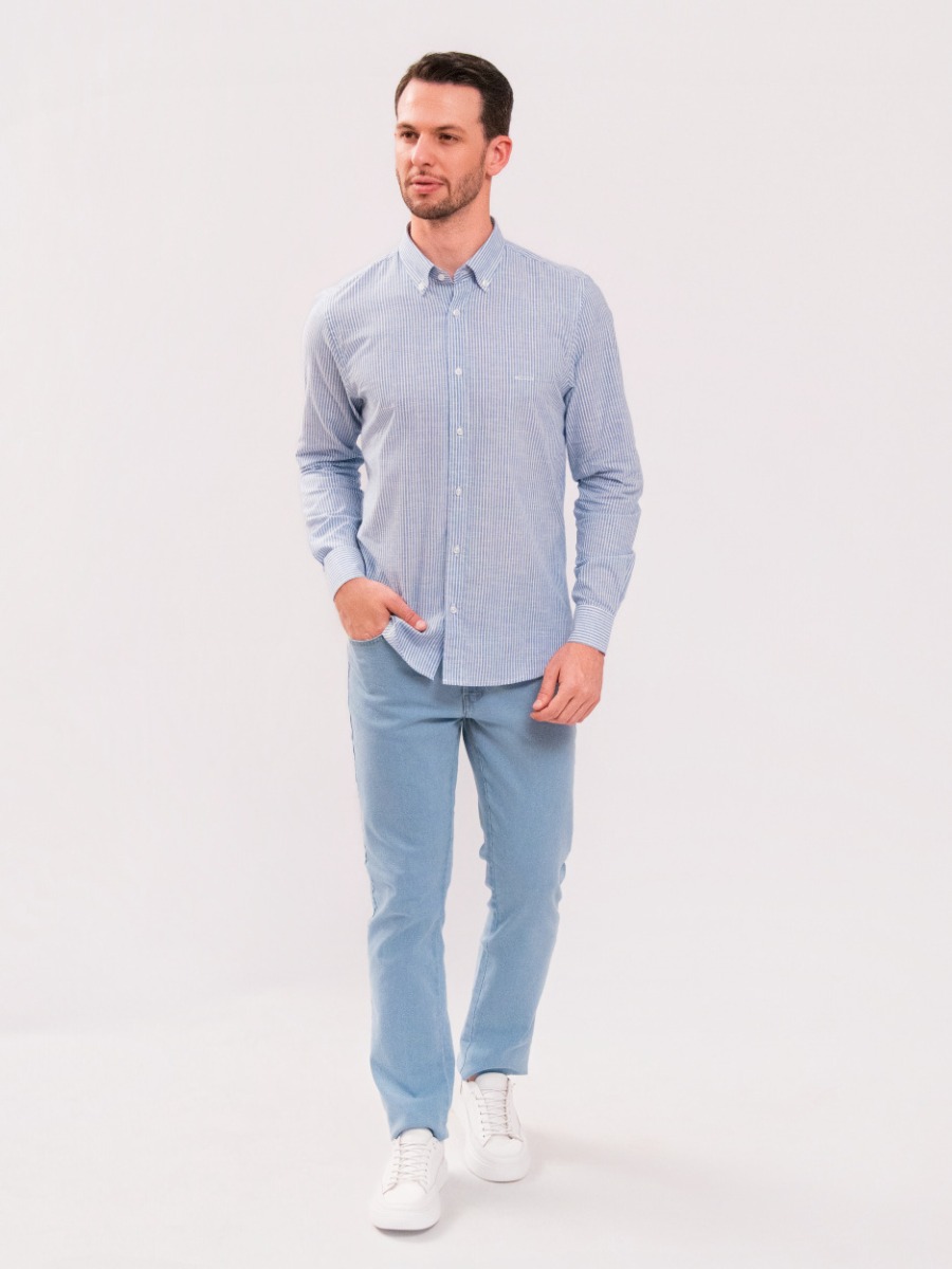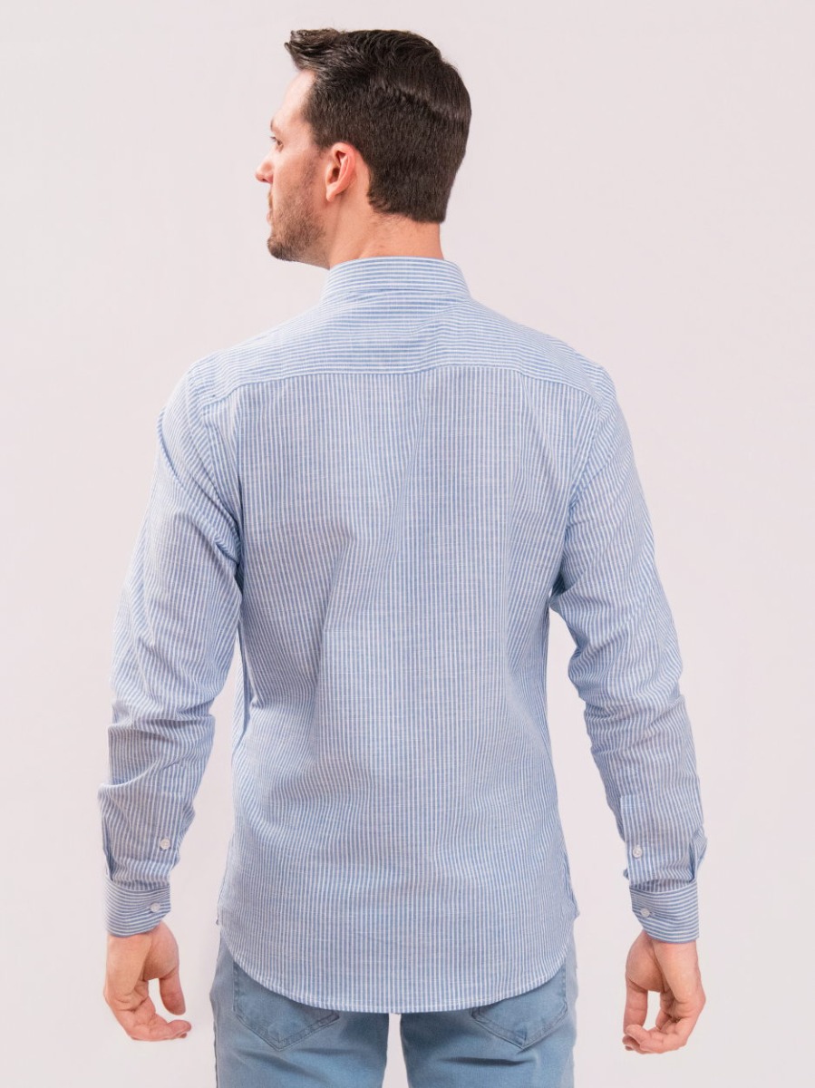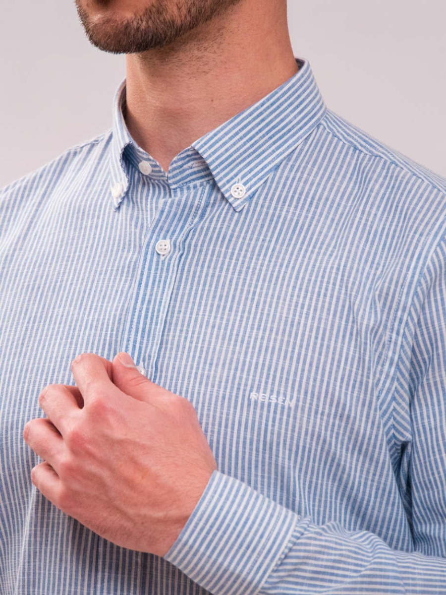 - Camisa Reisen Manga Longa Listrada Azul e Branco