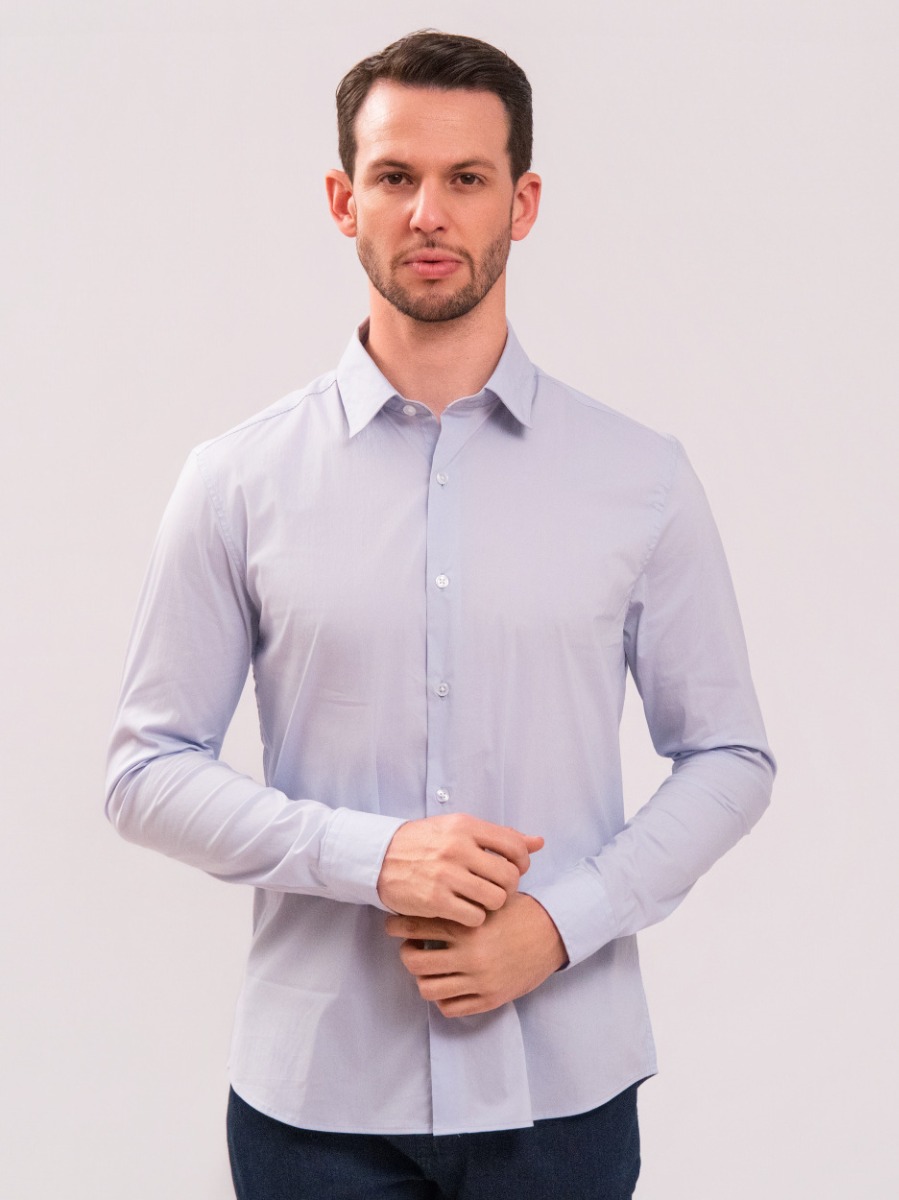Camisa Reisen Manga Longa Slim Algodão Azul