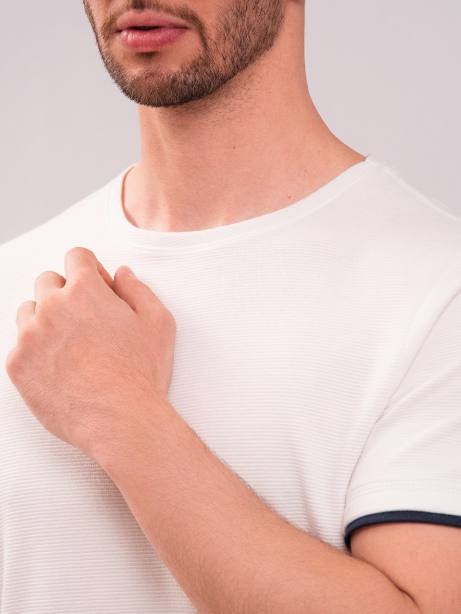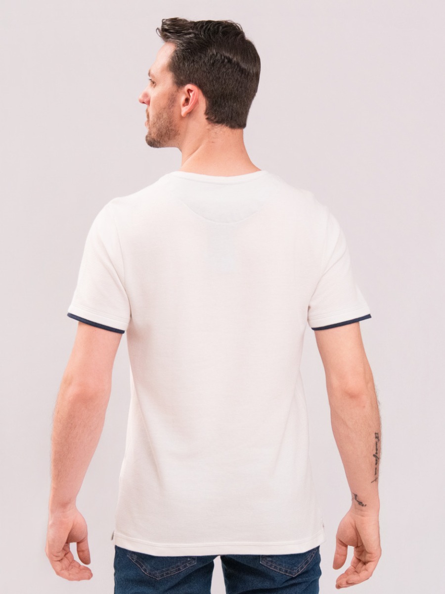Camiseta Reisen Manga Curta com Detalhe na Manga e Textura Off White