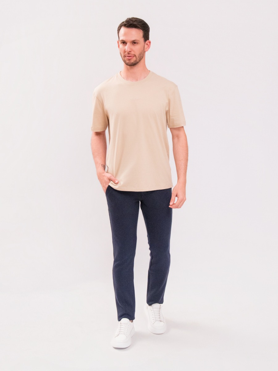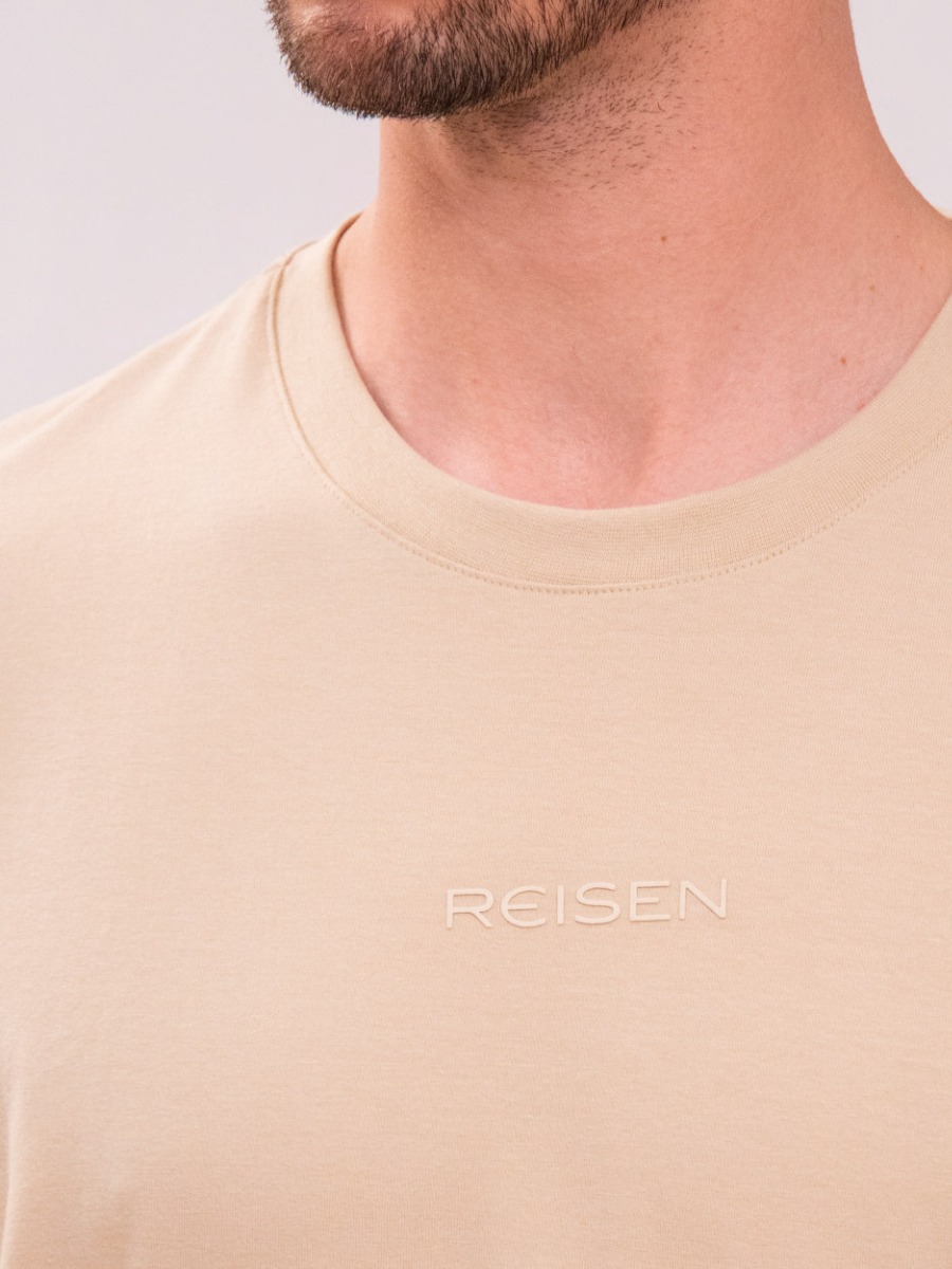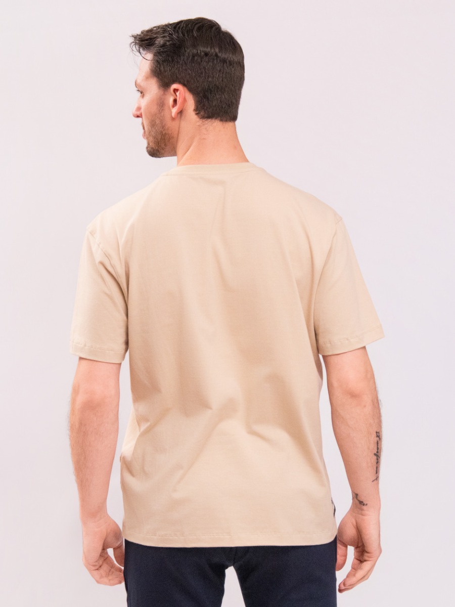 A camiseta masculina bege Reisen une conforto e estilo minimalista em uma peça versátil para o dia a dia.