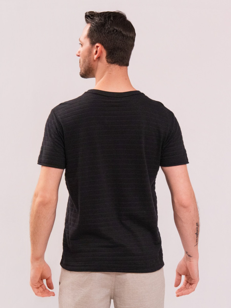 A camiseta masculina preta com textura Reisen combina estilo e conforto em um design moderno e versátil.
