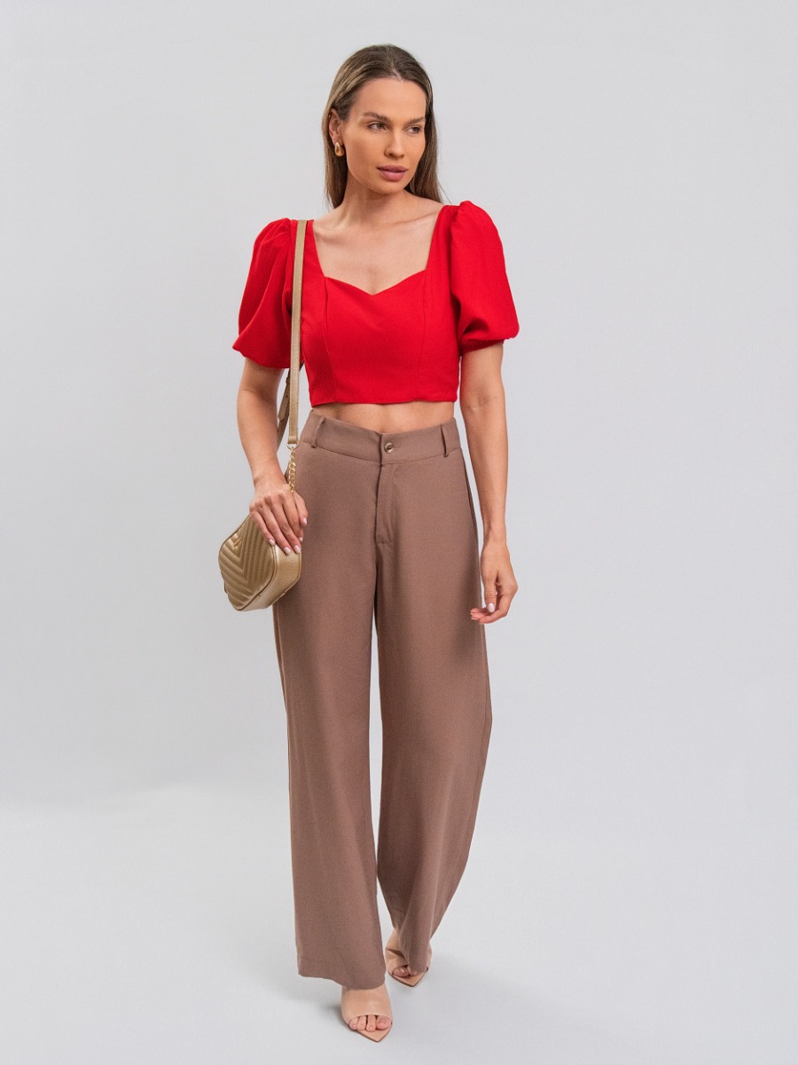 - Cropped Reisen Manga Curta Bufante Vermelho
