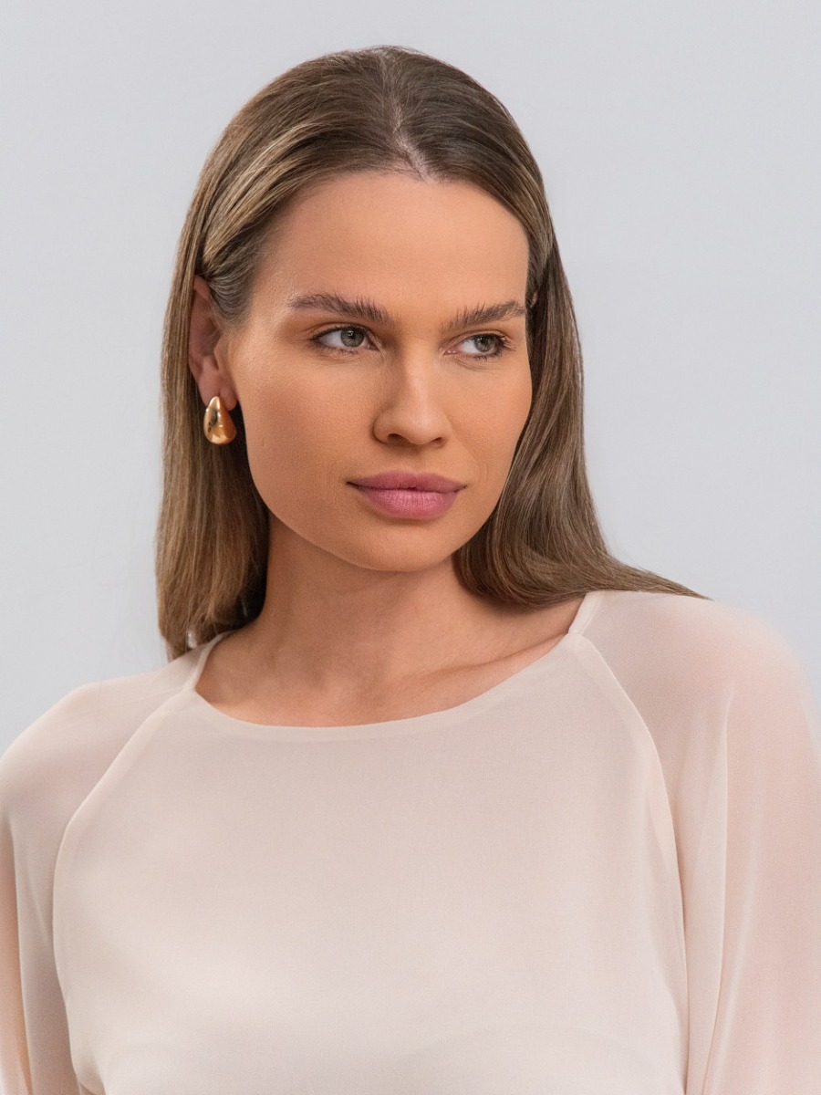 Confeccionado em tecido leve e fluido, possui mangas 3/4 amplas e elástico na barra, garantindo conforto e um caimento elegante.