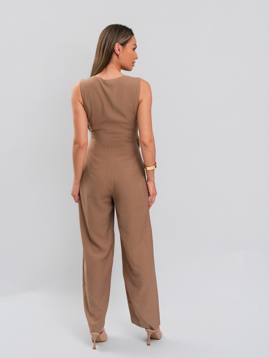 O macacão alfaiataria bege Reisen é sinônimo de elegância e praticidade.