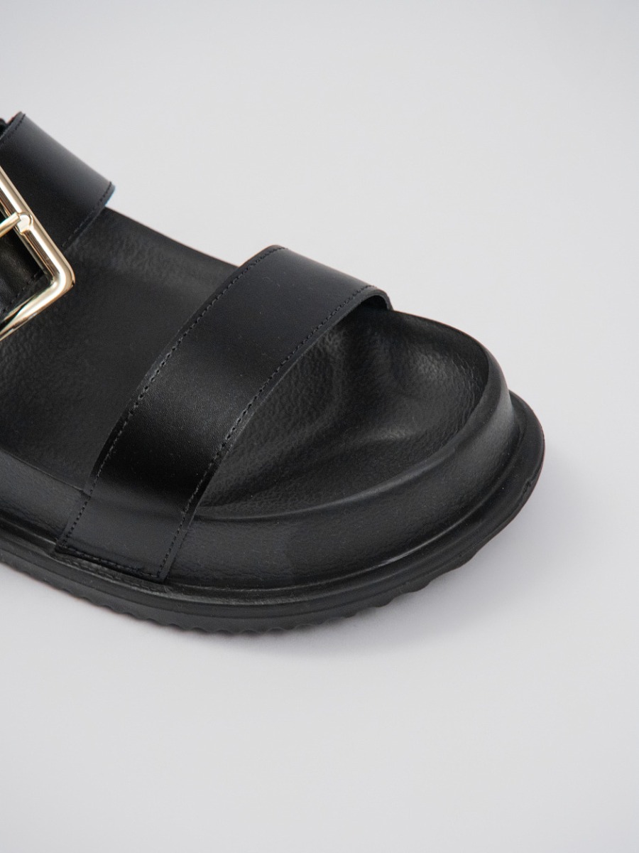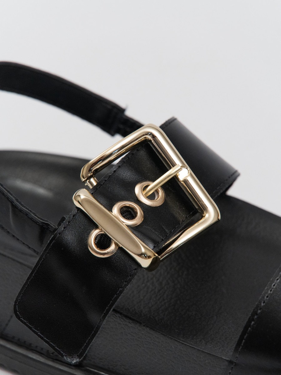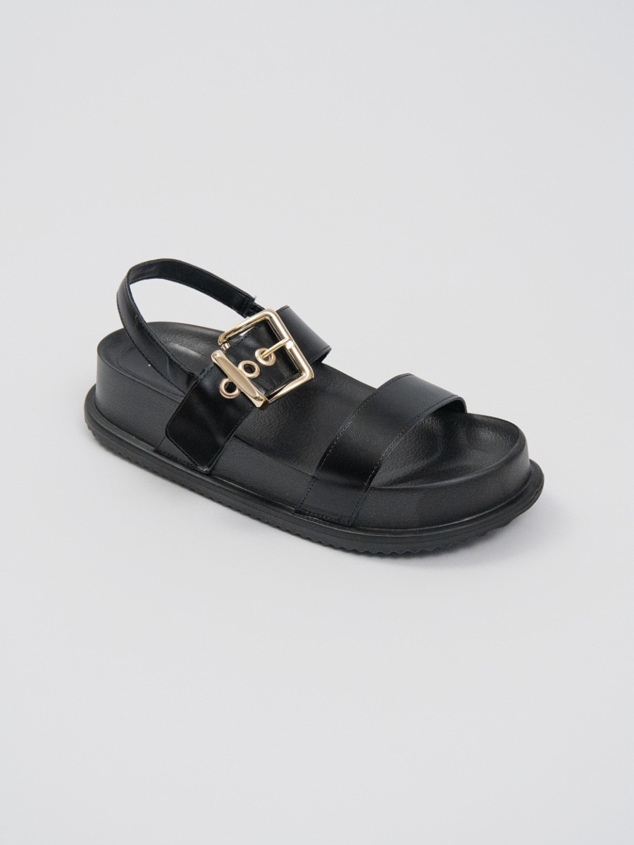 O design moderno com tiras largas e maxi fivela dourada adiciona estilo e personalidade ao look.