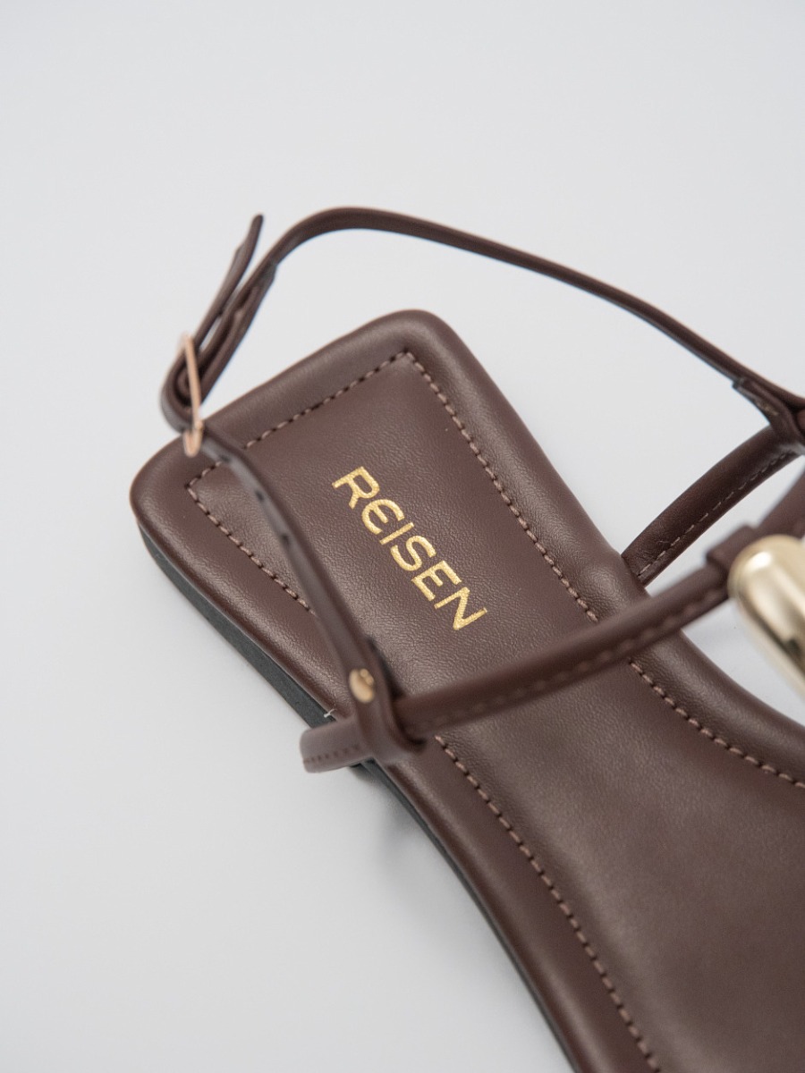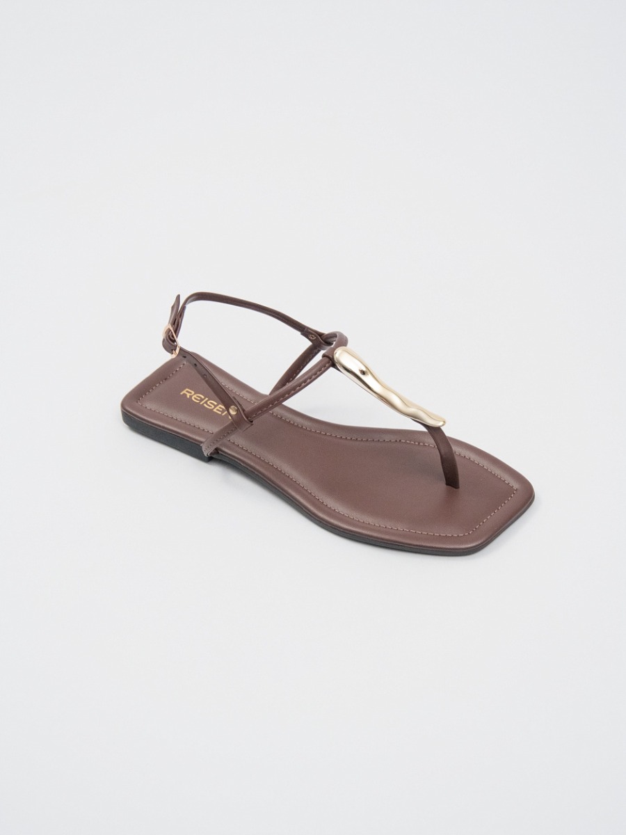 Rasteira Rasteira Feminina marrom com Acessório Orgânico Dourado Reisen