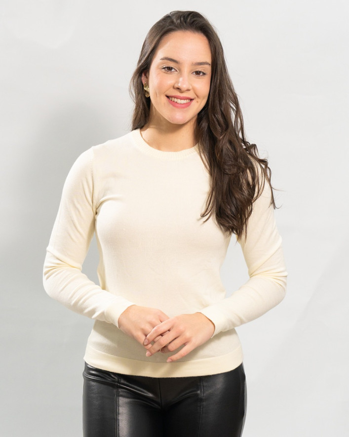 Blusa Reisen Tricô Leve Gola Redonda Off White