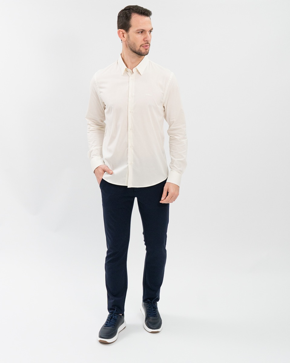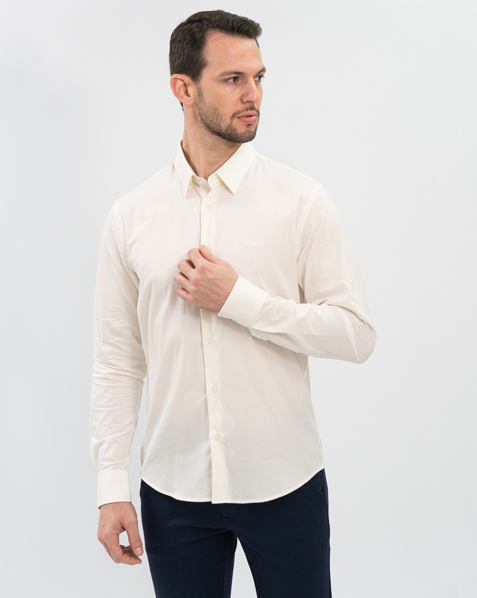 Camisa Slim Reisen em Algodão com Elastano Bege