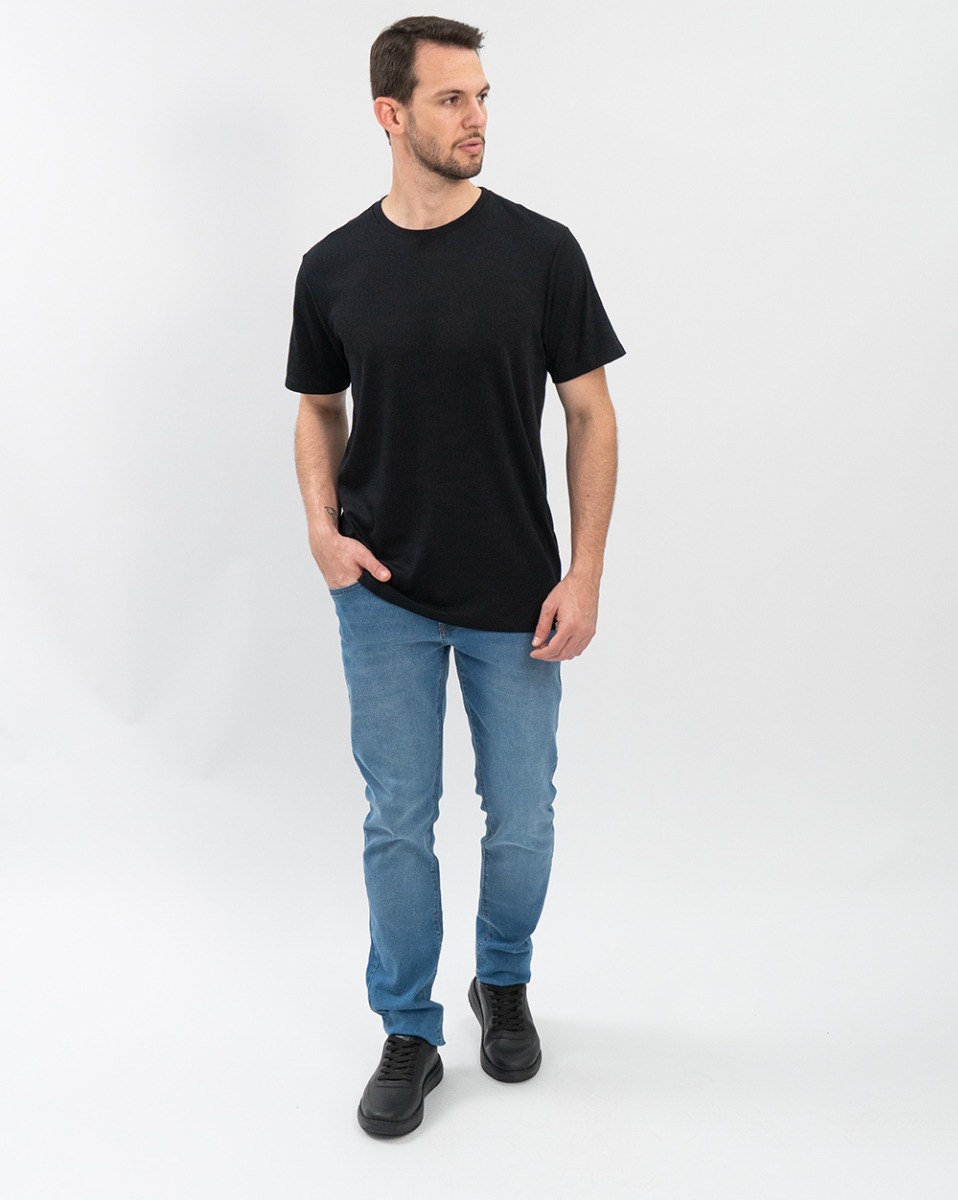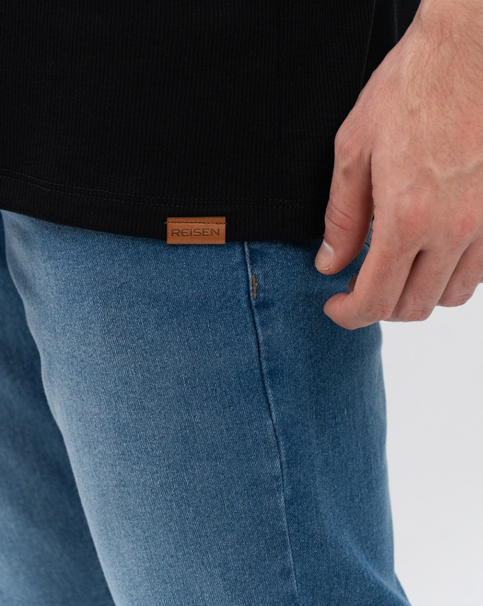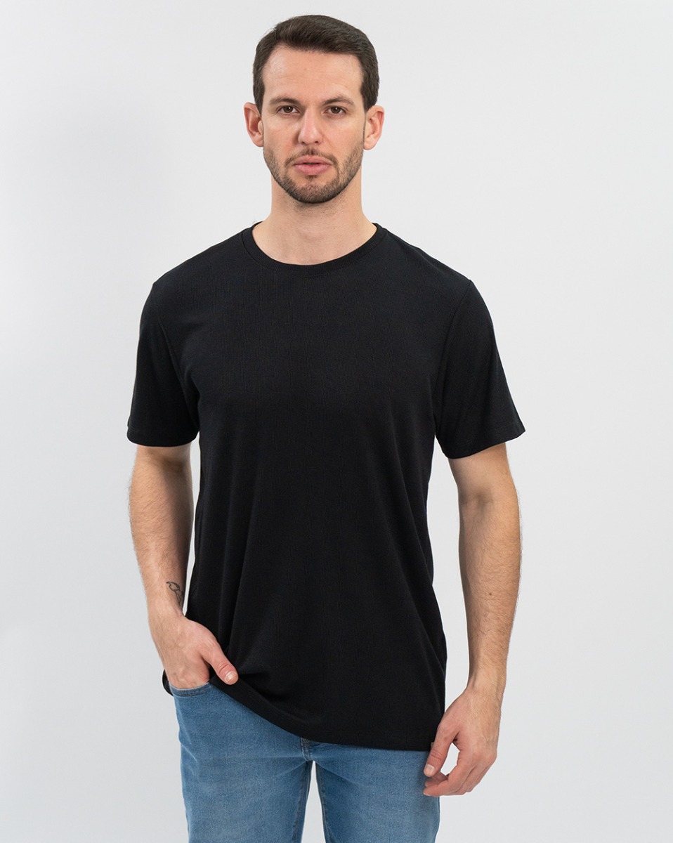 Camiseta Básica Manga Curta Reisen Com Textura Preta