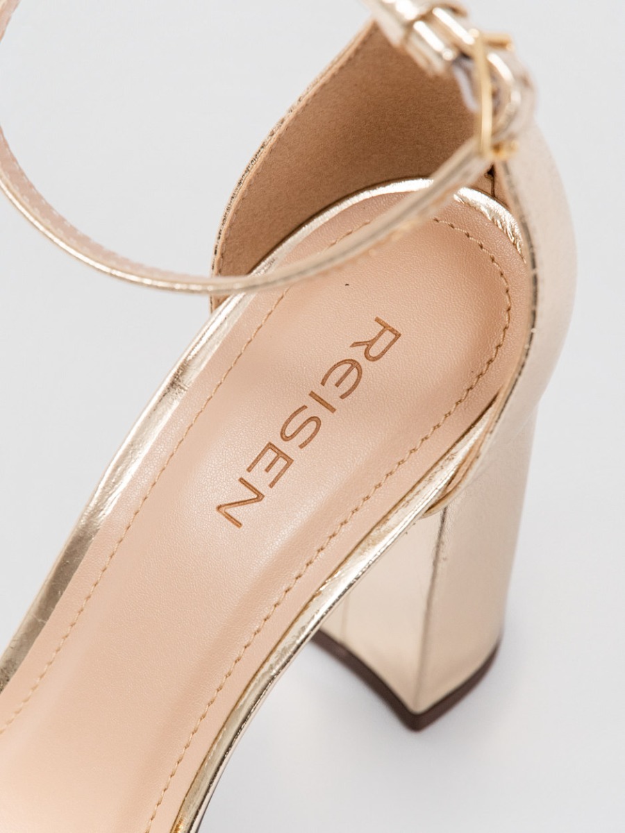 Sandália Reisen com Tiras Salto Alto Bloco Dourado