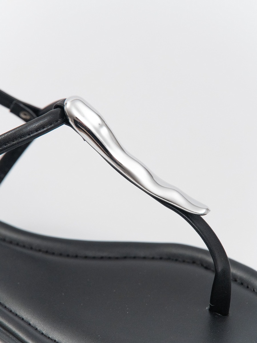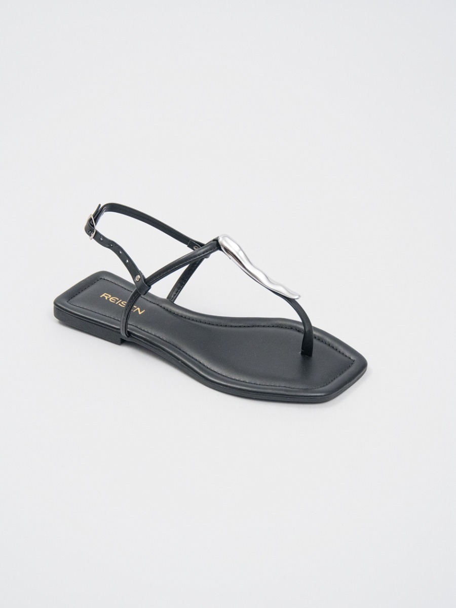 Sandália Reisen Rasteira Fio Dental com Metal Orgânico Preto