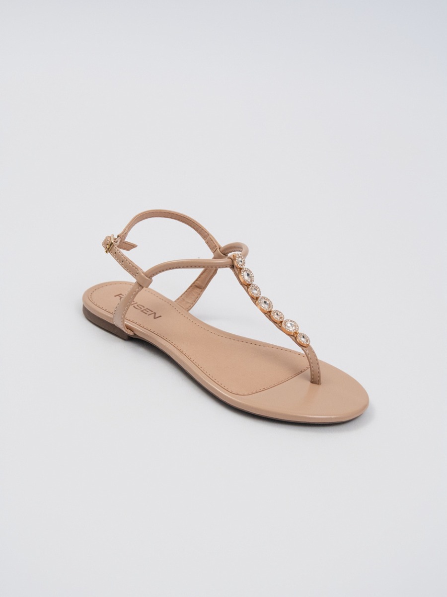 Sandália Reisen Rasteira Fio Dental com Pedraria Areia