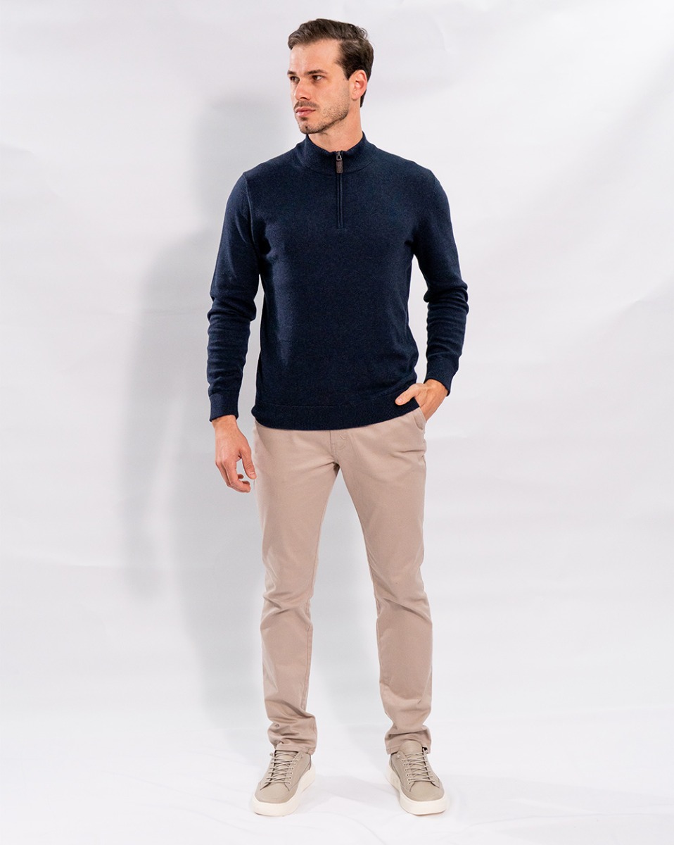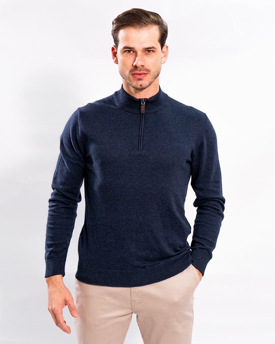 Sueter Trico Zíper Gola Reisen Marinho