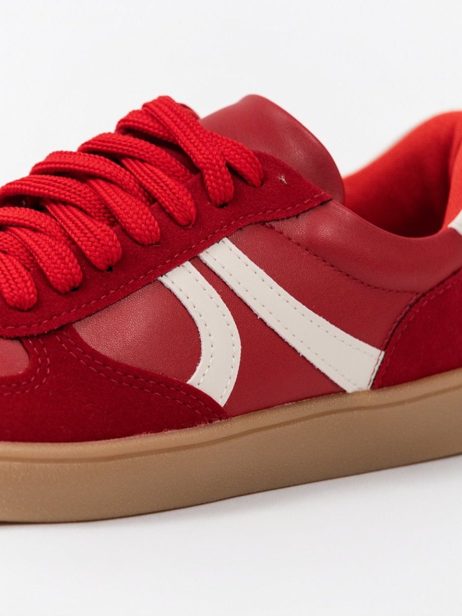 Tenis Reisen Casual com Listras Laterais Vermelho e Branco