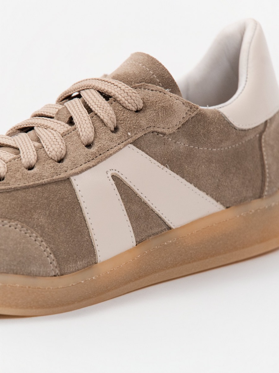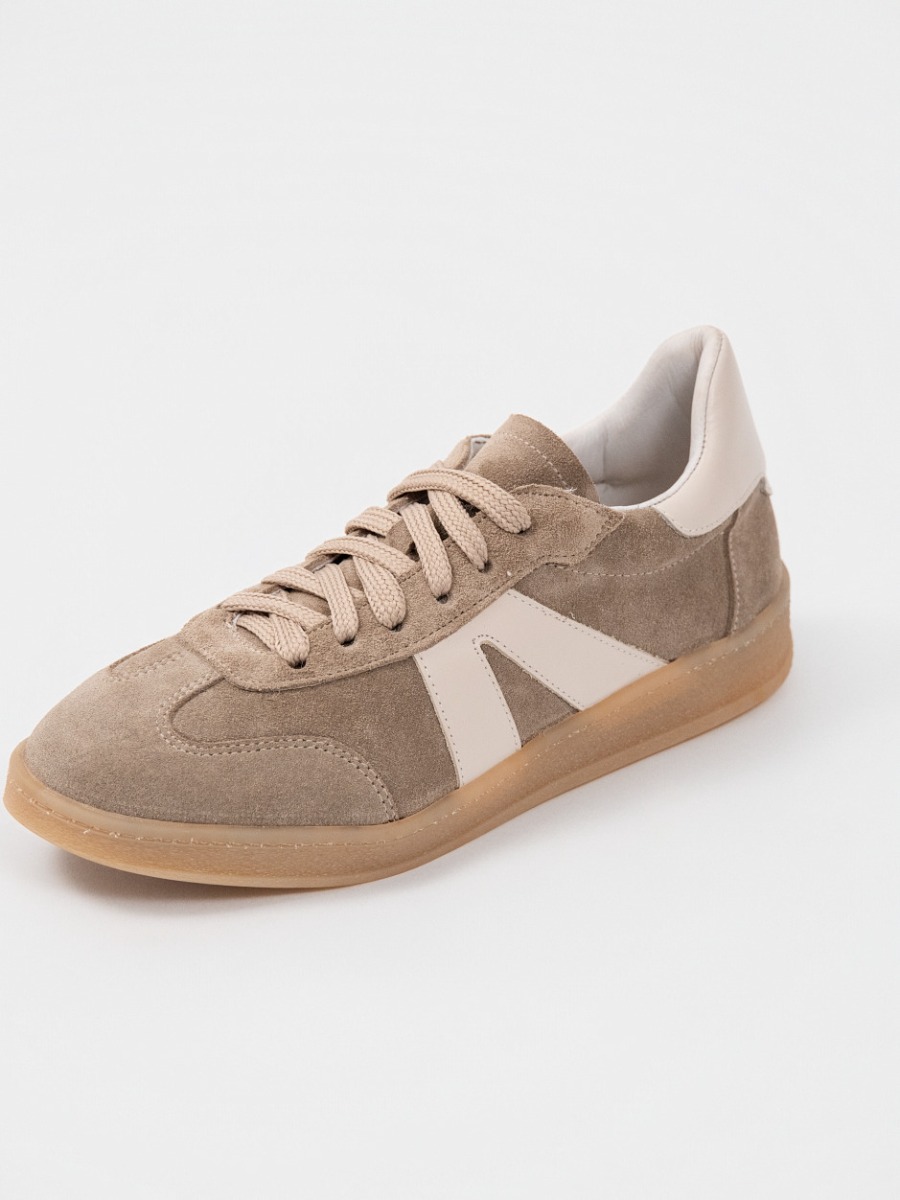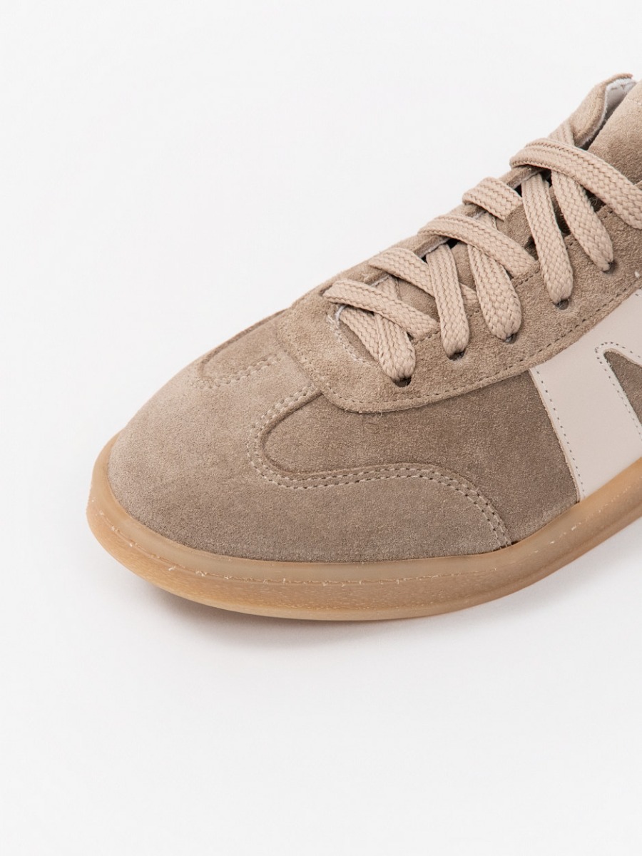 Tenis Reisen Casual em Camurça com Listras Laterais Bege