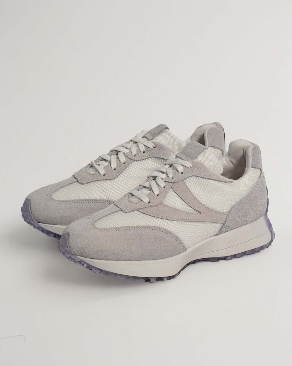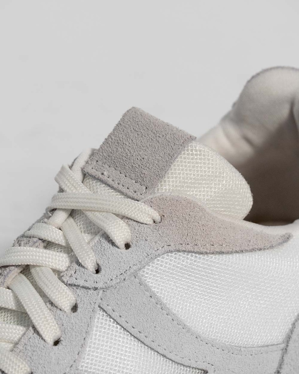 Tênis Reisen Feminino Branco E Cinza Em Tecido E Couro Camurça