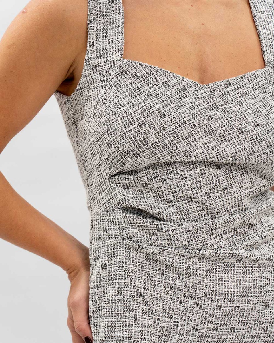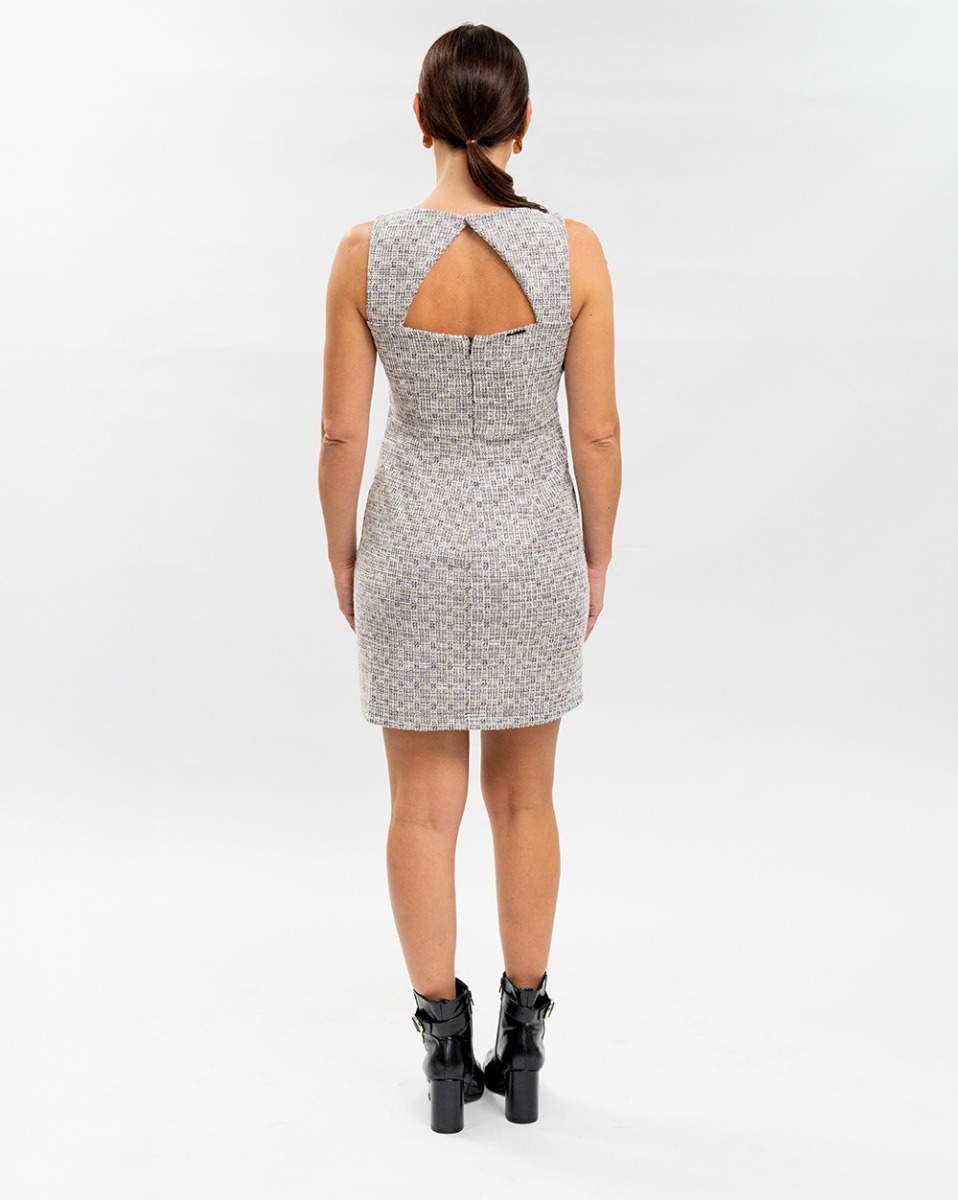 Vestido Reisen Curto Em Tweed Off/Preto