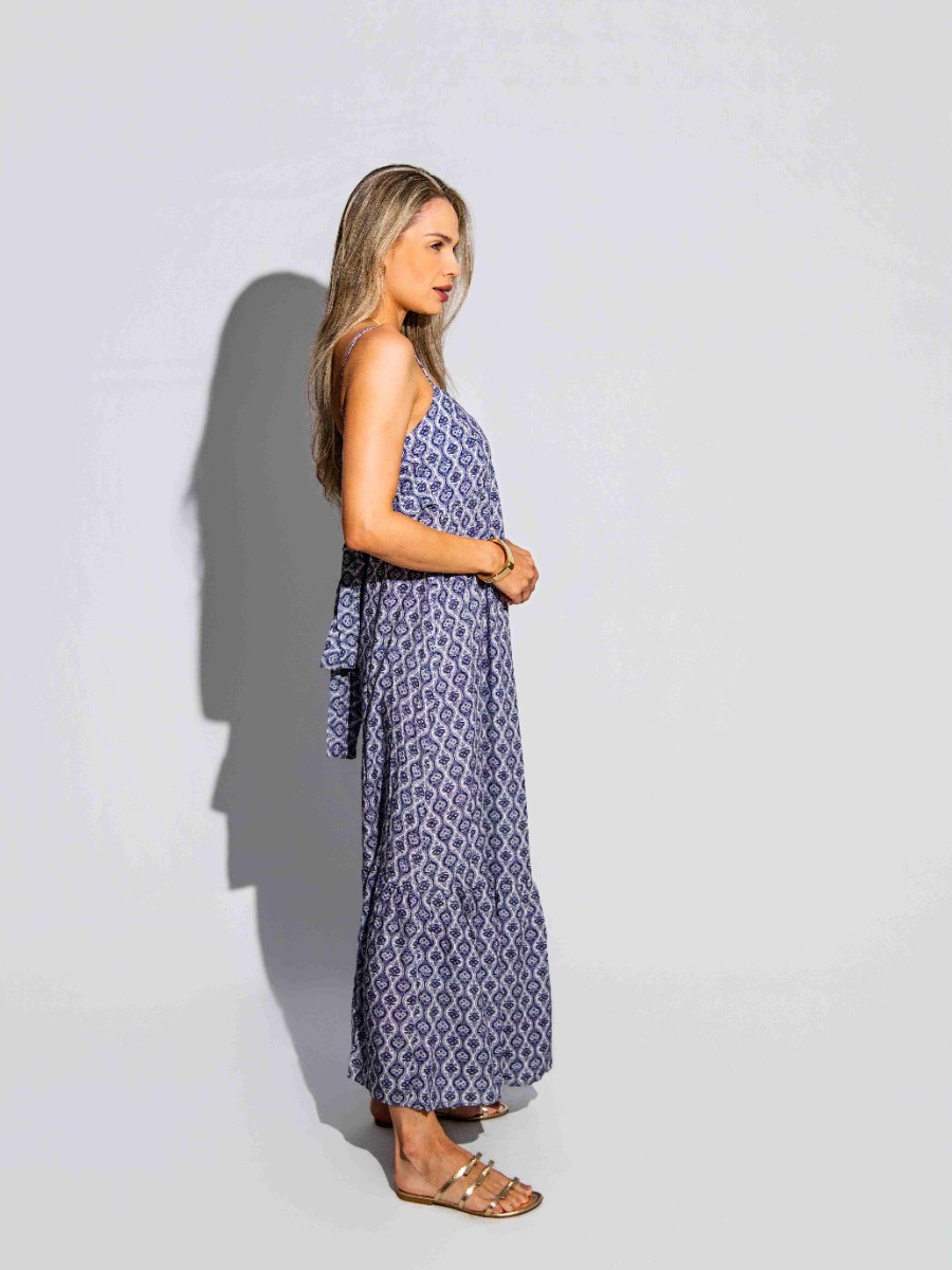 Vestido Reisen Longo com Alças Finas Estampado Azul