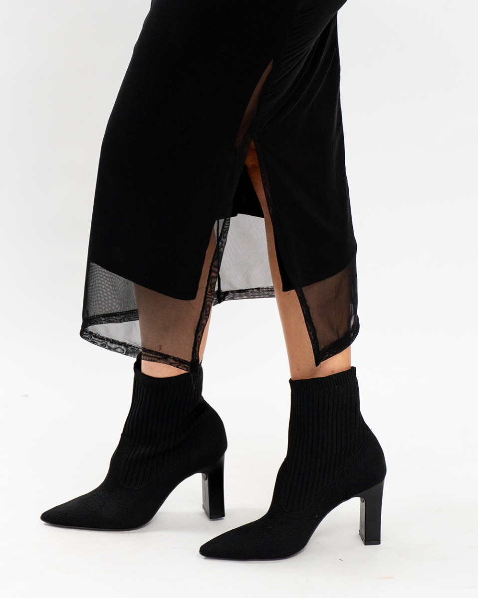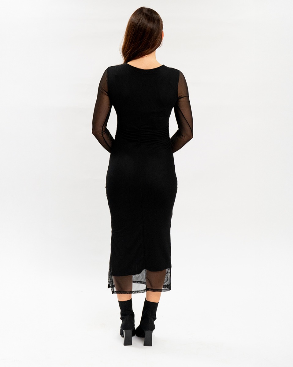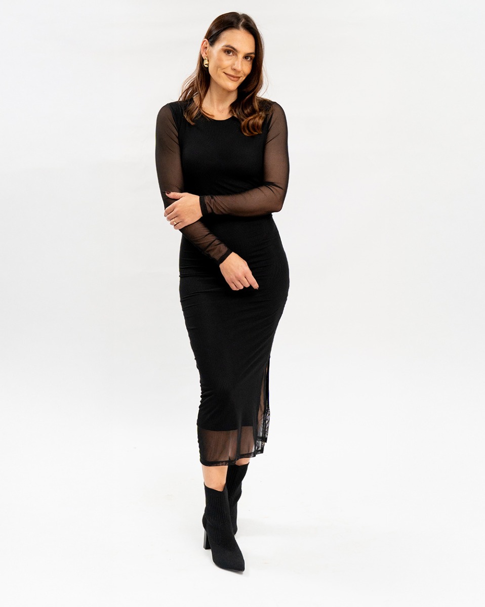 - Vestido Reisen Midi Manga Longa Em Tule Preto