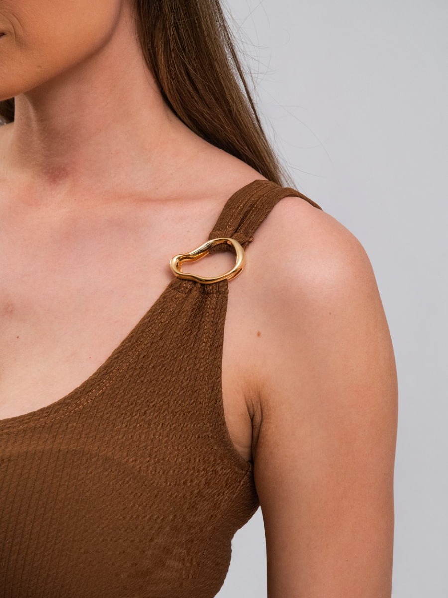Vestido Reisen Regata Midi com Detalhe em Metal Marrom